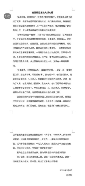 同学们也在观看了防疫思政大课后有了自己的心得。